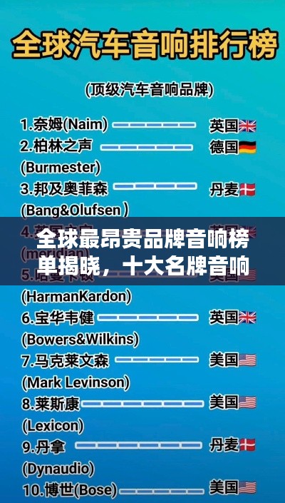 音乐,是人类生活中不可或缺的一部分,而音响则是传递音乐的重要媒介,随着科技的发展,音响品牌层出不穷,但哪些品牌是公认的最贵、品质最高的呢?以下是全球最贵品牌音响排名前十名。